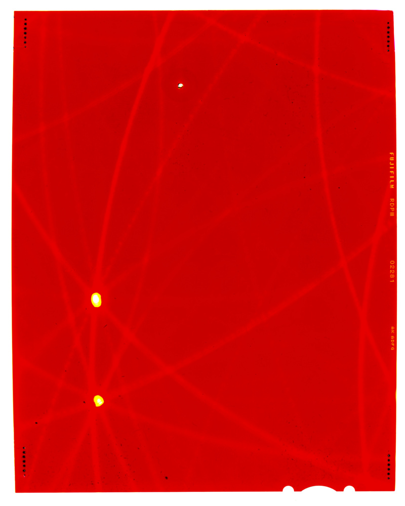 When I returned to the work this spring, I got a ton of expired film on Facebook Marketplace and made a workflow for developing the film myself. It became both more precise and playful. I like using expired material, as it acknowledges time in a funny way; shining cheap lasers from the early aughts on film from the 1980s creates a dissonance that feels really rich.