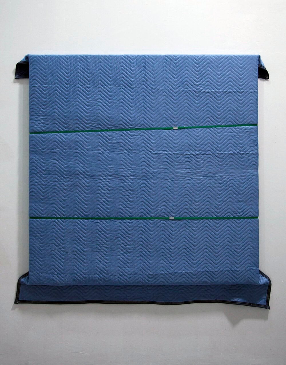 Part of the fun of “In General” is this game of art history associations, but the works stand on their own as Nietzschean “eternal returns,” or perhaps the reinterpretations of a pared down ’90s aesthetic. Ames oscillates between titles that are evocative and descriptive, between Folded Sheet Metal and Forced Collaboration: the former, literally a cut and folded form that again references Minimalism, humorous in its minute scale, and the latter, a blue ball inserted into a hole cut in a sheet of plywood.
