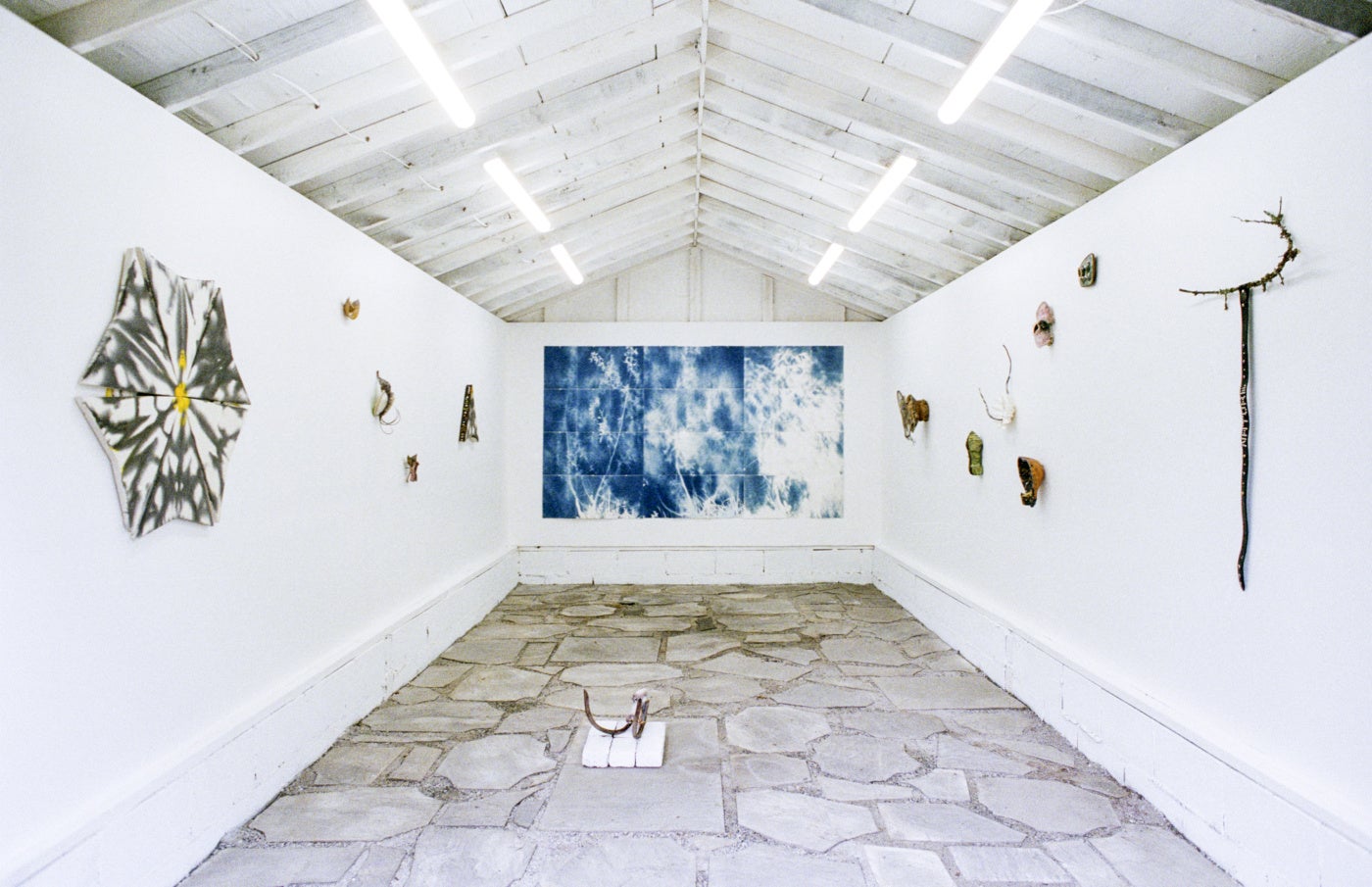 With an attentiveness to the natural world, Rustle presents work by Ash Ferlito, Tristan Higginbotham, and Eric William Carroll. Blue Boy is among a new wave of unique artist-run spaces cropping up around the South. With its unassuming exterior of a freestanding garage in a residential neighborhood, the interior presents exhibitions that transcend the typical humdrum of the white cube gallery model. There is an incredible synergy to the work in Rustle. It’s not often that butterflies, moths, and other pollinators flit in and out of the gallery.This phenomena was embraced on opening night as Ferlito set up an area for mothing—an activity akin to birding but with winged insects—arranging a muslin sheet and light source to attract these beautiful creatures.
