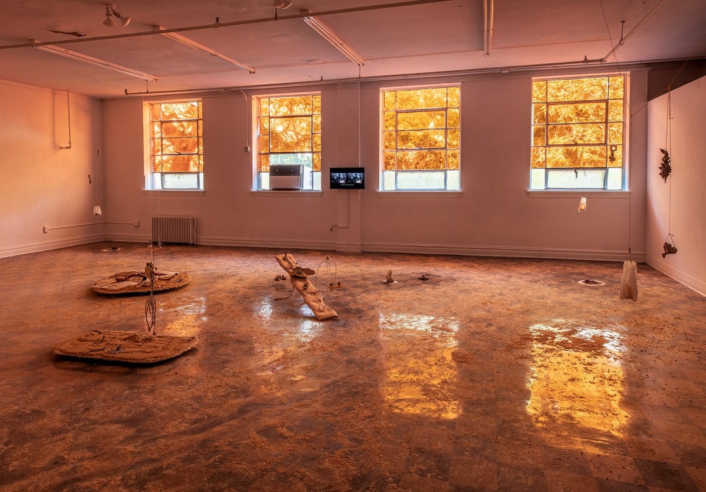 Manifested across garcia’s work is the transformative magic of decay. In missing pass (2021), their graduate show installation in Richmond, VA, the vocabulary emerged of forms and textures that had no straight angles, lacked cohesion, and looked like they could be blown away by a moderate gust of wind. The work invited the viewer to mind their step so as not to further disturb the floating assembly of sand, dry leaves, sticks, and other detritus. You were in the middle of a ritual, a scattering of means to an uncertain end.