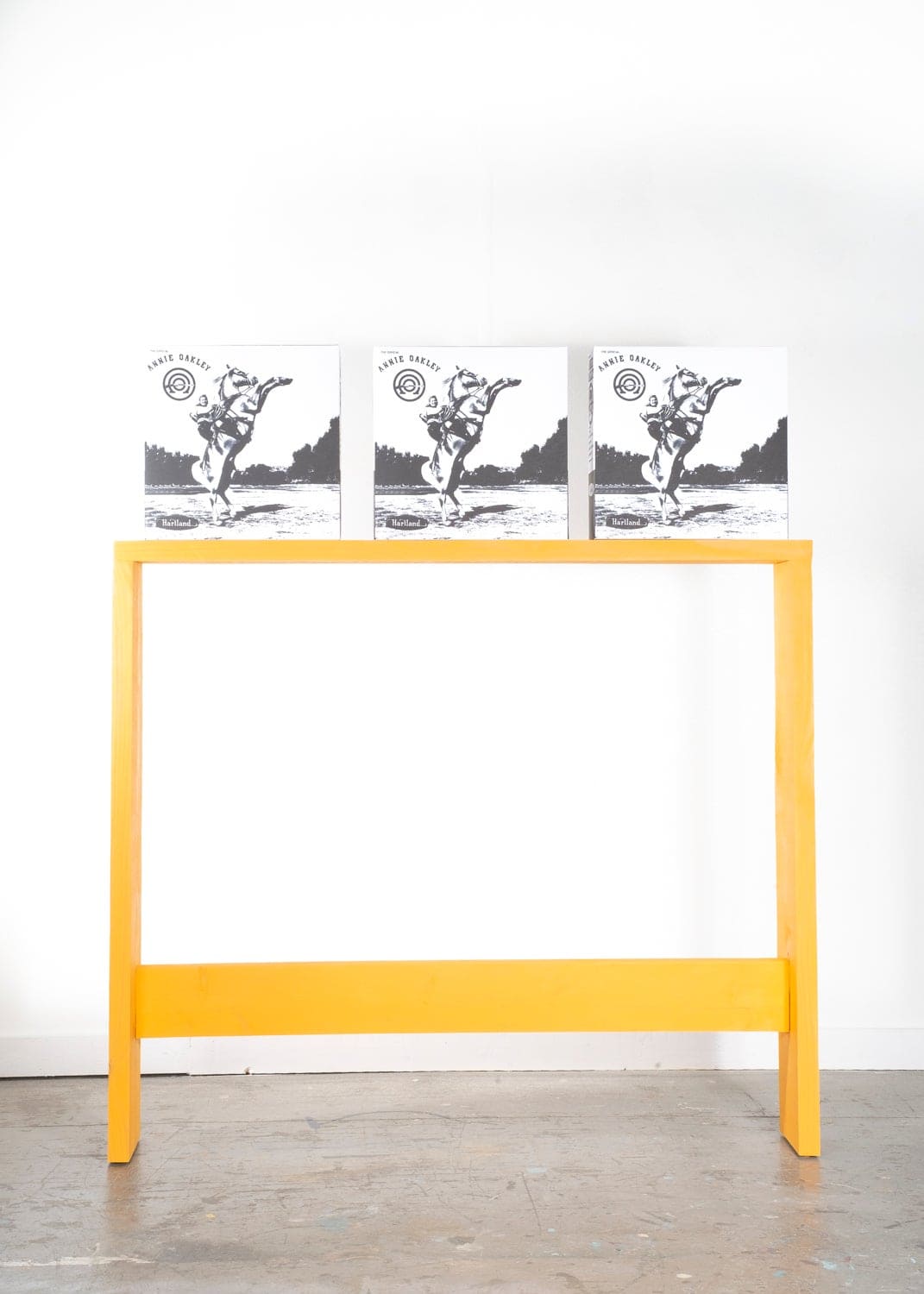 SC: And I think technically there’s all the way up to seven acts. The reason I broke everything up was because the research is so vast. It was a way to make myself sane by breaking everything up into acts: one for history, another for products, film, music, folk heroes and so on. Act three is centered on acting and theater, or playing the role of the cowboy. All the acts still blend together though, for example in this show I included Annie Oakley action figure boxes made to scale.