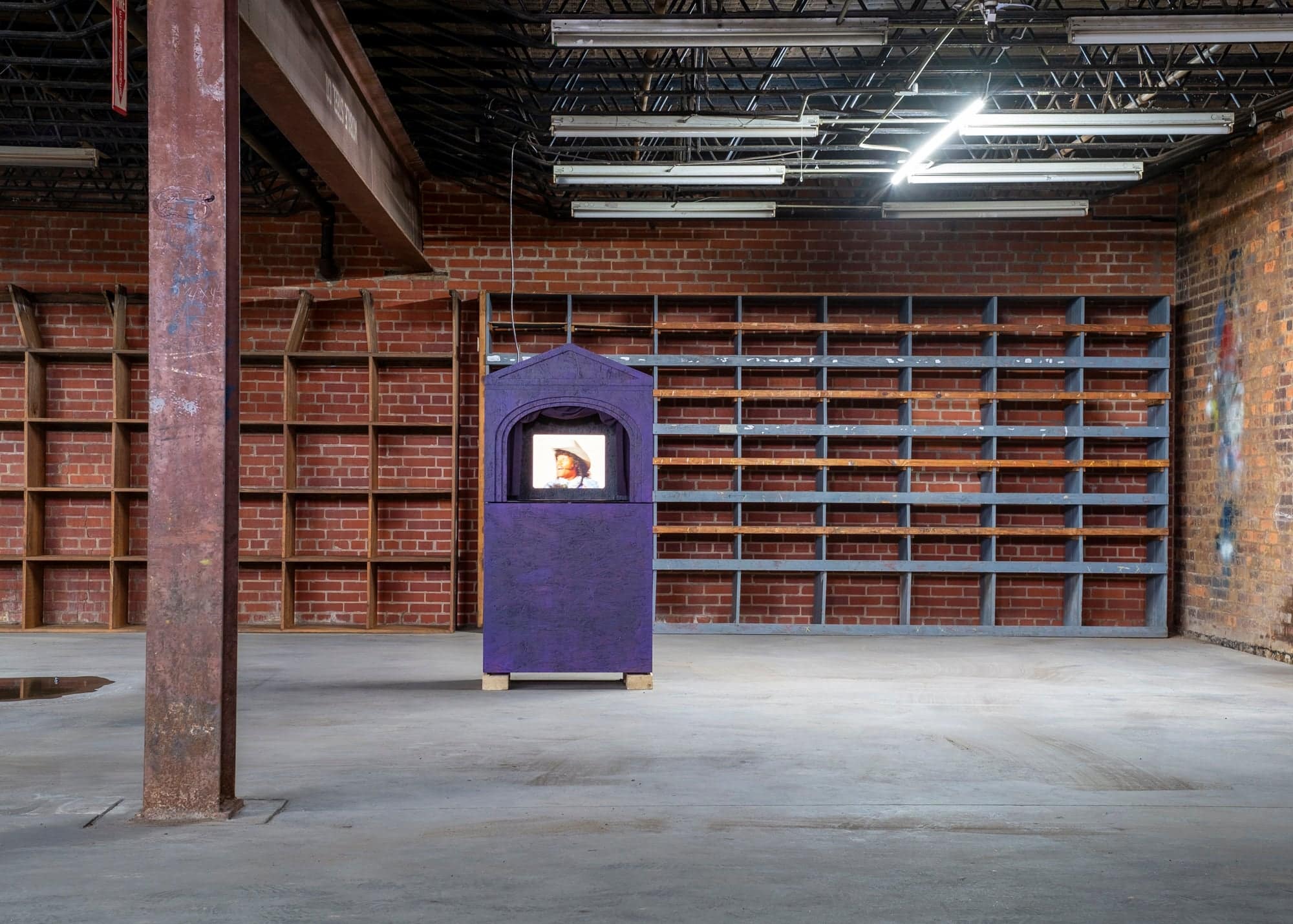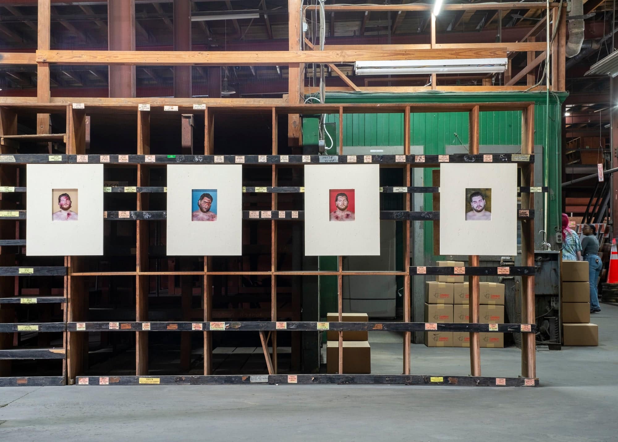 SC: Yeah, they’re based on a real object, but I made them look like they were a Xerox copy. They’re black and white and to the scale of the actual box you would have gone to the toy store for. What’s funny is the work is super pristine, but it doesn’t have to be presented in a pristine environment. That’s the beautiful thing about it. It can work in a white cube gallery, a space without context or meaning brought to it, or it could be in a warehouse like this one—empty but full of meaning because of what the space was once used for. The work is delving into the American dream and its artificiality. In that way, it felt appropriate for it to be in a space once used for blue collar manufacturing, now used to present these weird boxes.