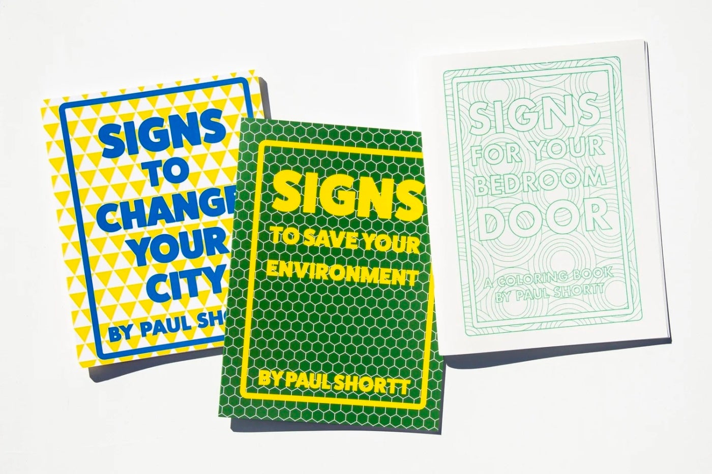 Over the last seven years, I’ve produced a series of Risograph-printed books designed as collections of sign-based prints, each one made to tear out individually. Along the way, I began creating coloring books, laser-cut books, and art guides.