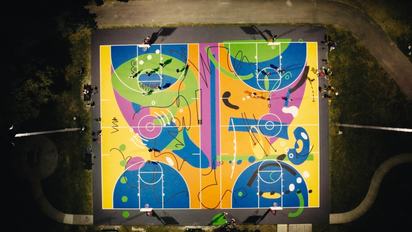 Recently, Moon took on her largest physical project to date. Uncommon Routes, a painted basketball court at Legion Park off Biscayne Bay in Miami, fuses Moon’s sketching and community practices as she gathered friends and loved ones to paint the court collectively. Whether through Miami VIS or the public court, Moon’s world-building affords second chances for all generations to play the game. Stated inconspicuously on the Miami VIS website, on a page explaining the offseason training program, is a sentence that embodies the ethos of Moon’s practice: “Because no matter where you are in your basketball journey, the game still loves you back.”[3]