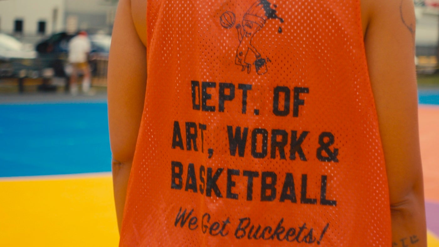 In creating a world that is as real as it is speculative, Moon paves an alternative path as a practicing artist who once had to abandon her other goals for a more stable life. The dream of being a professional athlete is now coupled with the reality of being an artist. In the tricks and the possibility of transcending the physical limitations of what basketball can be—whether those owed to advanced age or the limited opportunities for femme-identifying players in the sport—there is hope. It is in the camaraderie between the players who jumped into the training without hesitation, the jerseys that are designed by hand to look as real as the WNBA, and the bleachers filled with local artists cheering on Moon as she plays game after game across the summer season.
