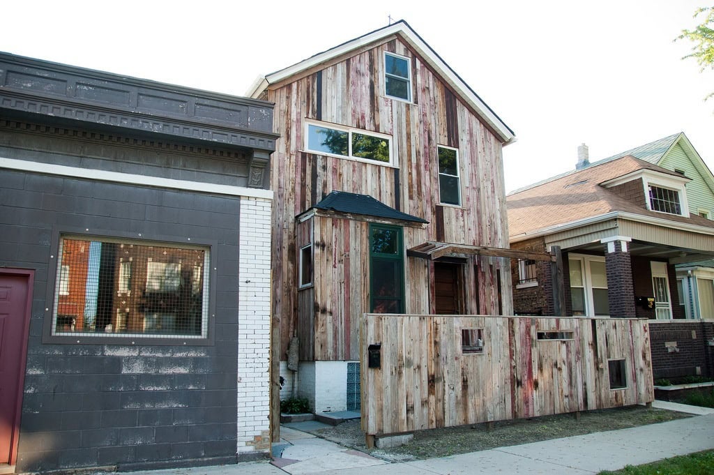 In his 2007 exhibition Plate Convergence at the Hyde Park Art Center, for example, he invented a fake Japanese mentor, Yamaguchi. Forced out of Hiroshima then married to a black civil rights activist, Yamaguchi would fashion ceramic dinnerware and host meals for people to gather and discuss issues of “race, political difference and inequity,” explains Gates. The influence of this faux mentor was written all over the minimal design on one of the already complete homes on Dorchester Avenue, which is reminiscent of a Zen teahouse.