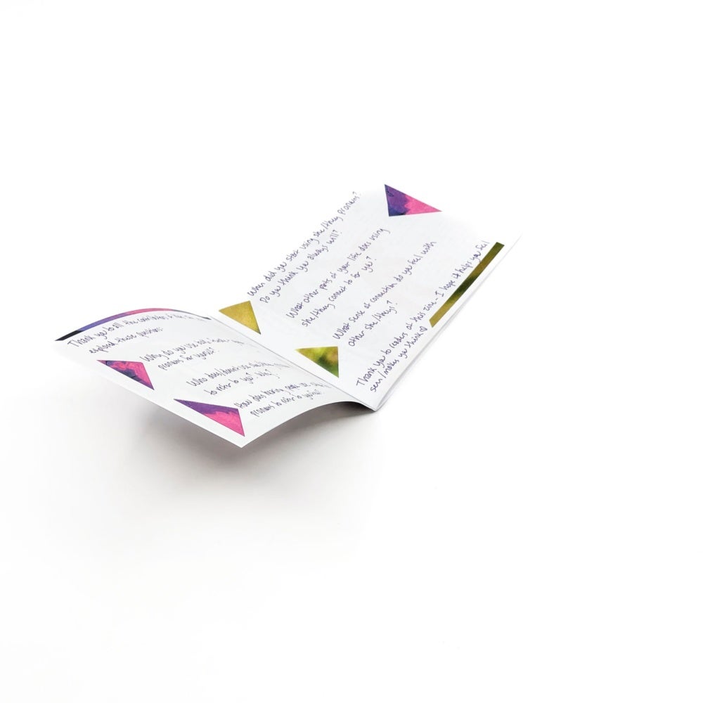 While many of hart’s zines tackle serious topics with depth and breadth, she isn’t above a feel-good project. hart most recently made a short run exclusively for the students in one of her high school classes. Throughout the semester, her students jestingly begged her to share a ranking of the top ten genders. While hart skirted around this question, at the end of the semester they crafted a zine titled “Top 13 Genders” (2025). The genders were obscure references, such as “crew socks with sandals”, paying homage to a student in the class. The zine not only materialized the semester-long banter, it also left a clear message to each of the students in the class. You are seen. You are understood.