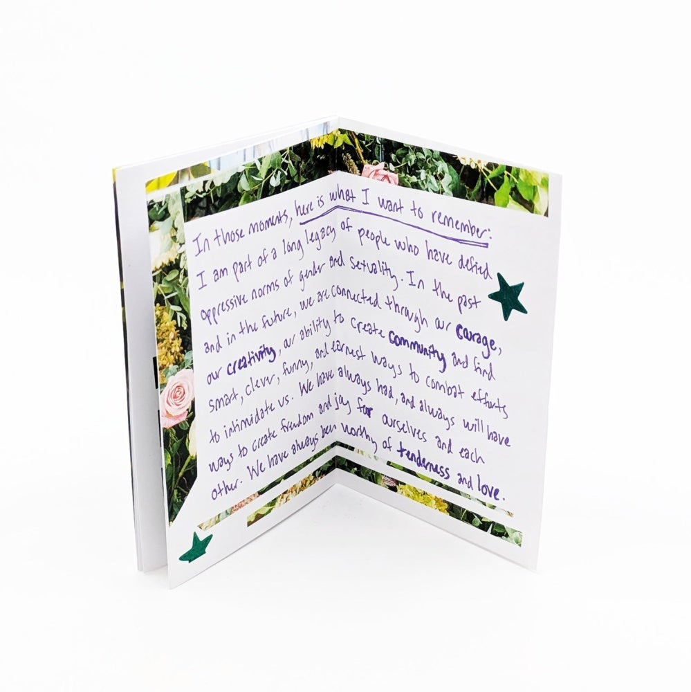 Throughout their zine publications, hart has proved she has plenty to say, and she’s eager to engage others in the conversation. In another project they aimed to elevate the stories of LGBTQ+ individuals from the rural community they grew up in. “Thirty some people talked to me about their experiences, spanning the course of decades,” said hart. “I translated the highlights from those interviews to a digital zine that was about the LGBT history of my high school.” After compiling the zine, hart suspected that the individuals interviewed might benefit from being in community together. Thus, out of that project grew an alumni network advocacy group, dedicated to improving the culture at their alma mater. Hart hadn’t intended for a community to grow so concretely from the project, but had remained attuned enough to those they had interviewed to sense this need for connection.